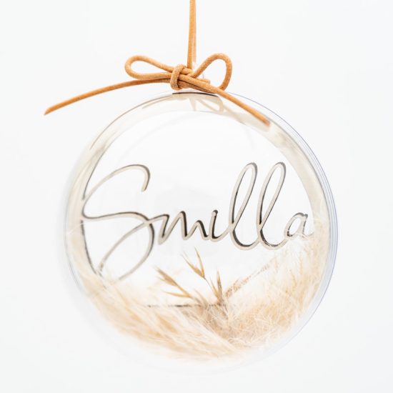 Baumkugel mit Wunschtext und Pampasgras