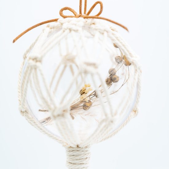 Baumkugel mit Makramee und Trockenblumen