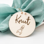 - Der Wunschname und eine Rakete werden auf das Holzschild graviert.