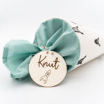 Das minimalistische Holzschild hat einen Durchmesser von 10cm. Es wird mit einer Rakete und dem Wunschnamen personalisiert. Mit dem Lederband kann das Schild an der Schultüte befestigt werden.