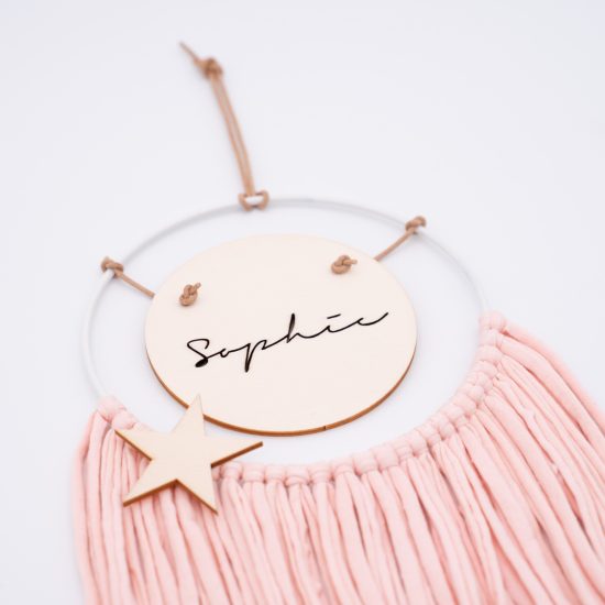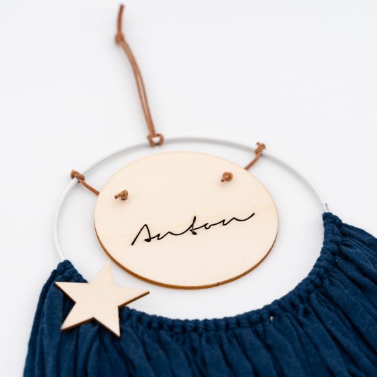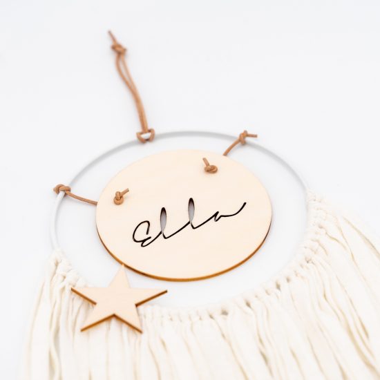 - Material: Metallring, Baumwollkordel 5mm, Pappelholz, 3mm