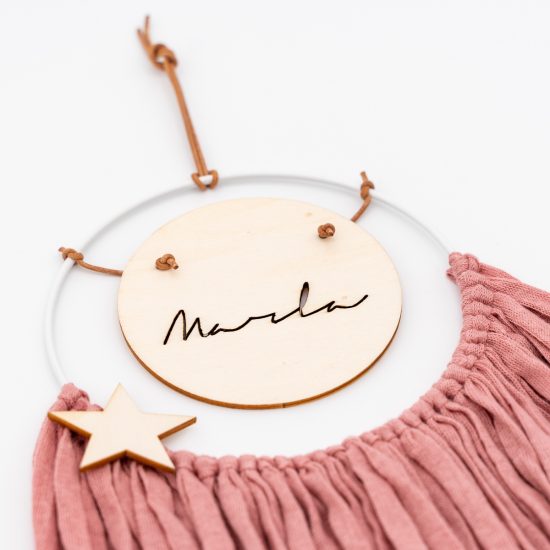 Der Traumfänger ist handgemacht und wird mit deinem Wunschnamen angefertigt.